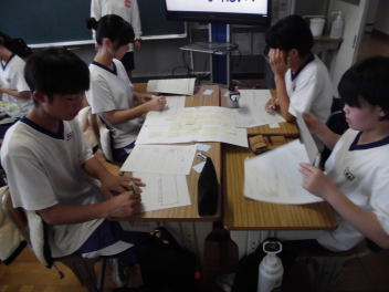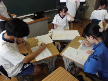 それぞれが日々感じている学年・学級・部活などの問題点と改善点について考え、話し合い、発表を行いましたsmiley