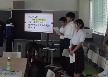 前半では、「新津プライド」をテーマに、生徒一人一人の意識の持ち方や、生徒会企画について生徒会のメンバーから発表をしてくれましたsad
