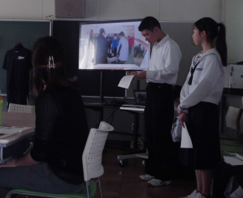 学校運営協議会が行われ、代表として3年生のLL発表代表生徒、2,3年生の生徒会長・生徒会副会長が参加しました