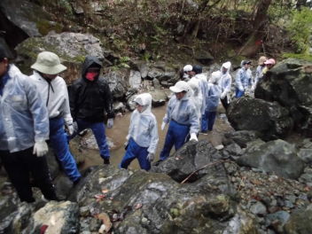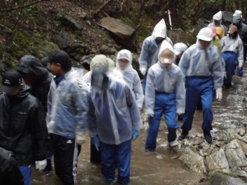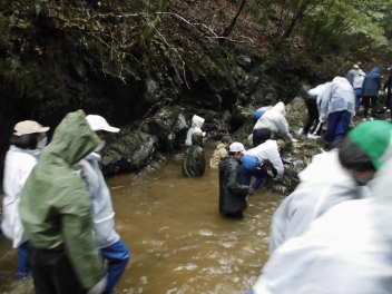 2日目は、雨の中でしたが沢登りを行いましたsad