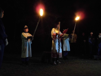 キャンプファイヤーでは、各クラス練習してきたスタンツを披露したり、皆で歌ったり踊ったりしました
