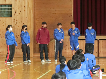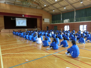昼休みの時間を使って、団対抗雑巾がけリレーが行われています