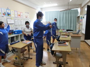 昼休みの時間を使って、団対抗雑巾がけリレーが行われています