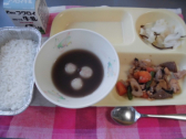 給食でも七草の中のすずしろ(だいこん)など、野菜をたくさん入れた汁を用意しました