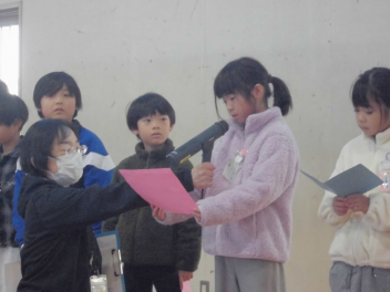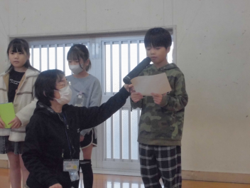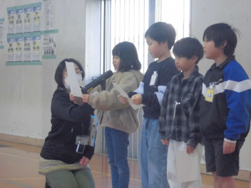 各クラス代表2名の児童が、「3学期のめあて」を発表しました。