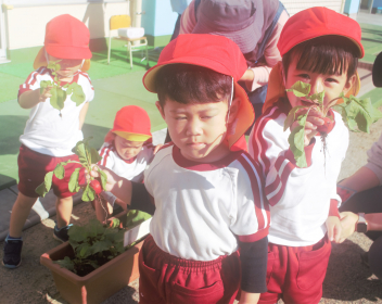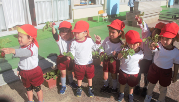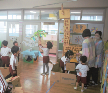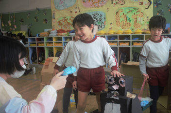 年長さんは、今練習している銭太鼓を見てもらいました。一生懸命頑張る年長さんに、高校生から大きな拍手をもらって、年長さんはとても喜んでいました。