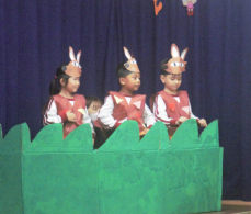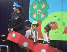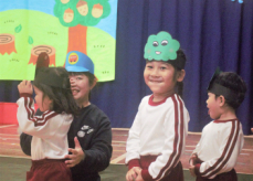 このほかにも発達に応じ、リズム遊戯や劇遊び、表現遊び、劇などがあります。子供たちが一生懸命演技しますので楽しみに待っていてください。