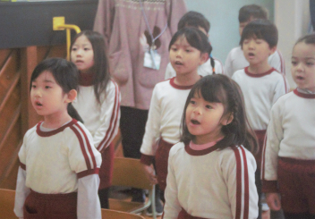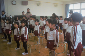 園歌をみんなで歌い、冬休みの過ごし方についての話を聞きました。
