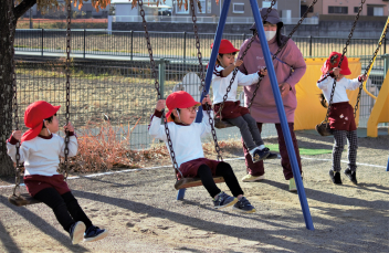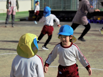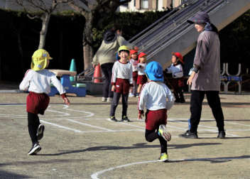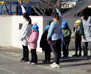子供たちは寒さに負けず、外遊びを楽しみました。