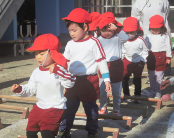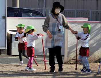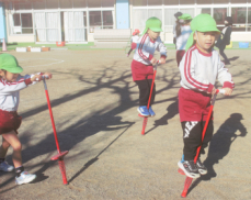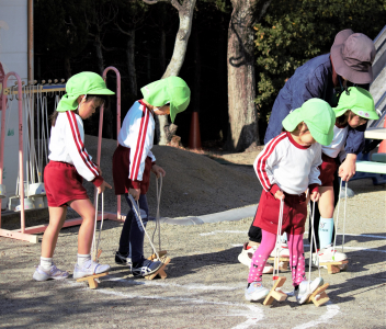 年中さんもホッピングやゲタのようなぽっくりに挑戦していました。