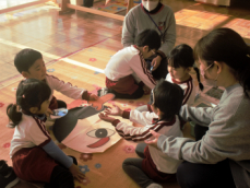 年長さんはかるたやトランプ、そして郵便屋さんごっこなどを楽しんでいました。どの学年も、お正月に関わる遊びを楽しんでいます。