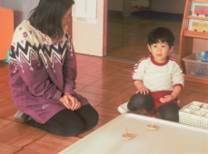 年少さんと年中さんは、福笑いやこまで楽しく過ごしていました。