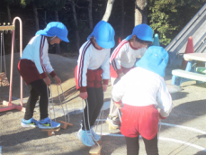 月曜日で2学期も終わります。いっぱい遊んだ後、学年毎に今まで使った物に感謝の気持ちを込めてきれいにしました。