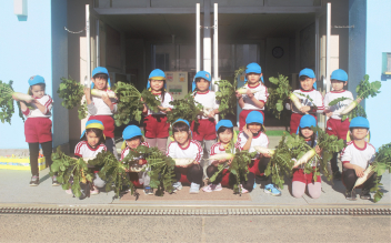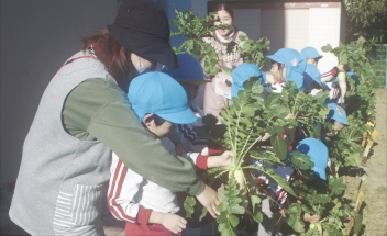 今日、年長さんが大切に育てた冬野菜のだいこんを収穫しました。楽しみにしていてください。