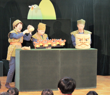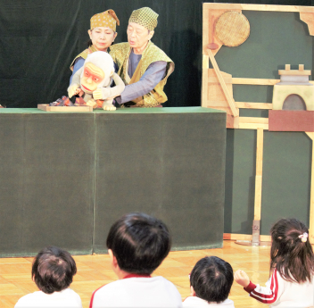 2本目は「さるかにばなし」の人形劇です。人形のユーモラスな動きにみんな集中してみていました。