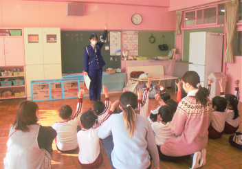 交通ルールを身に付けるためには、親子で「右・左・右」の安全確認や「右手をしっかり上げて横断する」など、一緒にすることがとても大切で、登降園時がとてもいい機会だと指導員さんが話されていました。大切なお子さんのために御協力をお願いします。