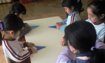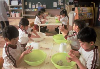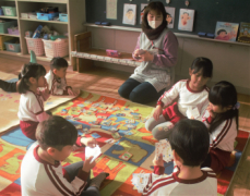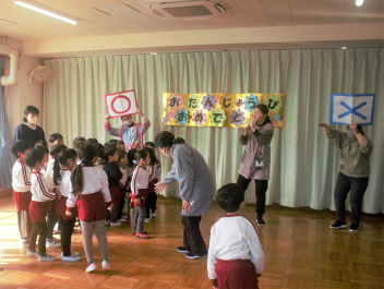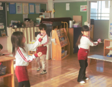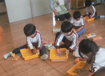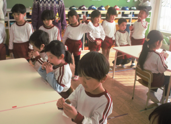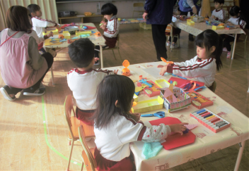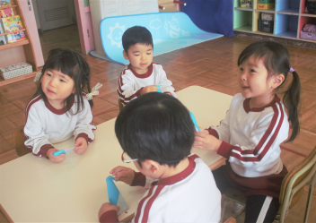 今日は、職員の園内研修で昼食時の担任交代を行いました。