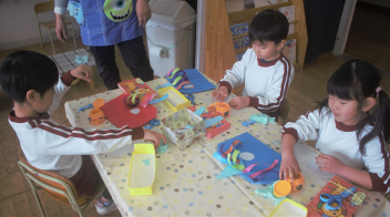 昼食の前は、どの学年も工作をしていました。まだ、途中の学年もありますが、何を作っているのかはお子さんに聞いてみてください。