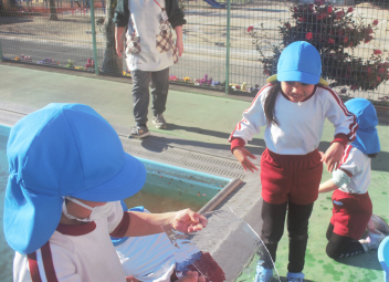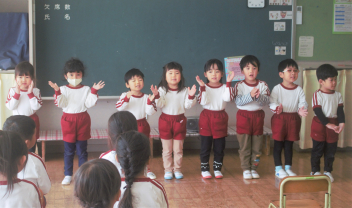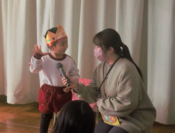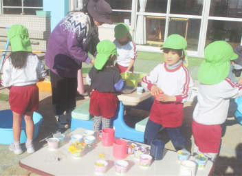 年少さんには、年中の先生が来てくれました。年中の先生からしっかり昼食を食べることを褒められていました。