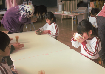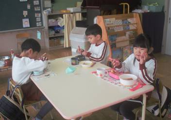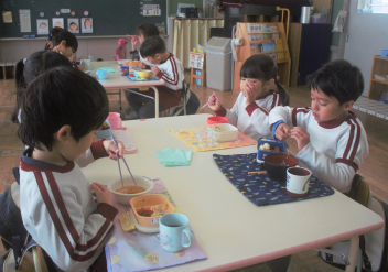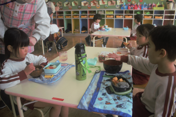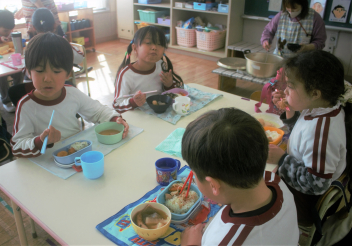 どの先生方も大好きな子供たちは、ニコニコ顔で昼食を食べていました。