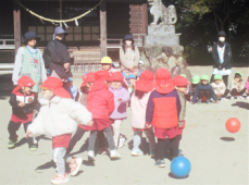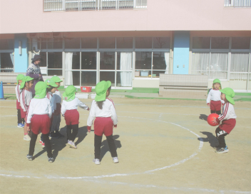 遊具で遊んだ後は、みんなで転がしドッジをやって楽しみました。