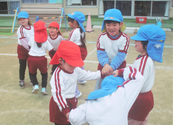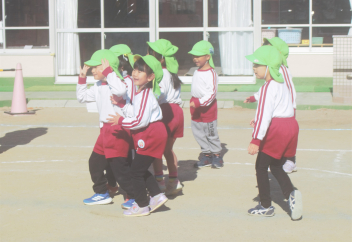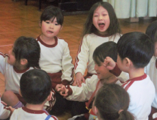 踊りをした後は、年長さんと一緒に遊びました。「なべなべ そこぬけ」を一緒に楽しみました。