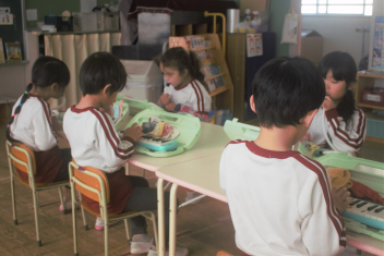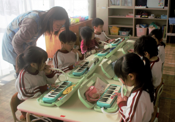 外でいっぱい遊んだ後、年長さんは鍵盤ハーモニカの練習をしていました。演奏を聞かせてもらいました。とっても上手でした。