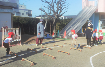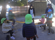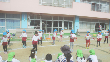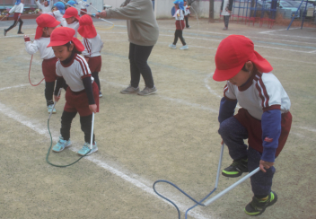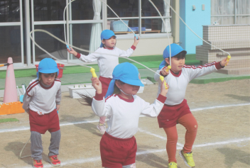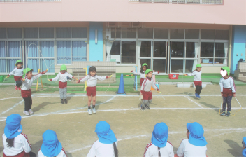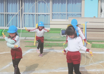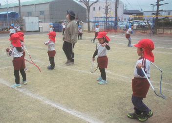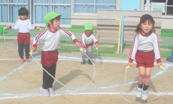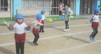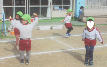 その後は、外に出てげんきタイムです。年少さんも今日は縄跳びに挑戦 ! 頑張れ! 年少さん