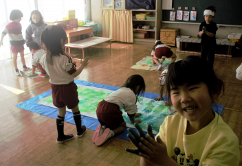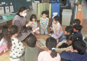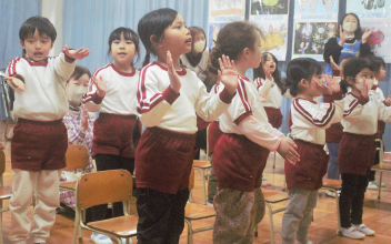 「おでんぐつぐつ体操」は子供たちが大好きで、おでんの具になったつもりで体を動かして楽しんでいました。