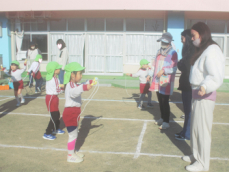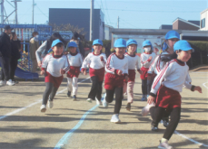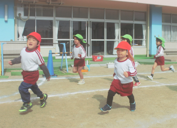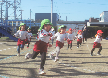マラソンでは年少さんも自分のペースで走り切ることができるようになりました。