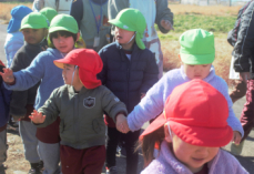 年少さんは大好きな年長さんとペアになって最後のお出かけです。今日も交通ルールをしっかりと守って行ってきます。