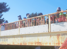 途中の歩道橋では遠くまで見える景色がきれいでした。通り過ぎる車に手を振ると、手を振ってこたえてくれるドライバーさんも !