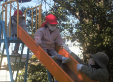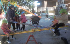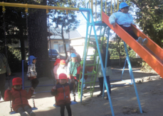 さあ、公園に到着です。滑り台やブランコ、園にはないシーソーなどの遊具で遊ぶ子もいました。