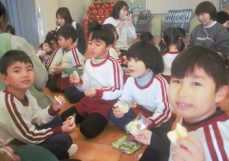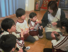 公園でいっぱい遊んだ後、園に帰ってきてみんなでおやつを食べました。とても楽しい時間を過ごすことができました。