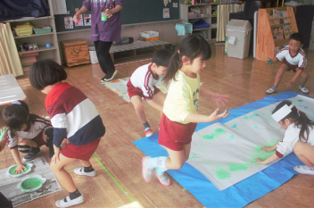四つん這いや、お尻歩きなどで競争をして楽しみました。
