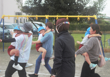 •  今日も朝から運動会ごっこを楽しんだ子供たち。