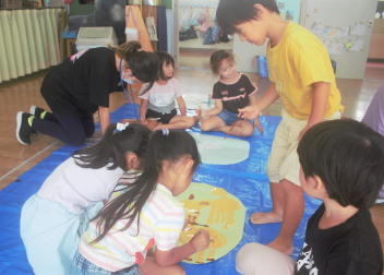 年中さんも年長さんも来週続きを描くそうです。楽しい絵の完成が待ち遠しいですね。