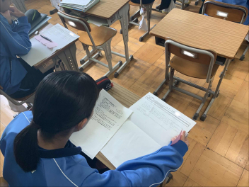 • 10月23日(木)に、学校全体で取り組んでいる校内研修の一環として、9年生の社会科(公民的分野)で研究授業を行いました。
