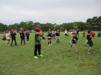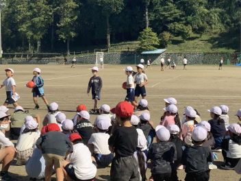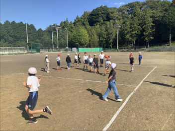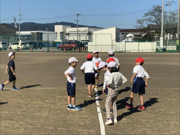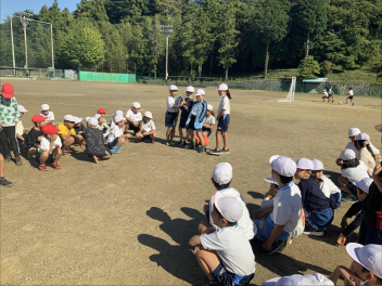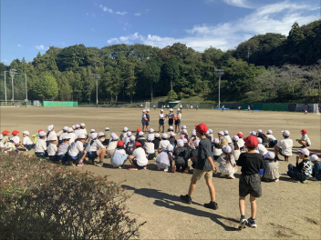 昼休みになり、多くの初等部児童が校庭に集合。リーダーの4年生が前に立ち、チームごとに整列させ、ルールを説明してくれました。
