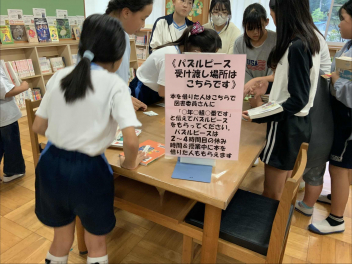 「友達のお気に入りの本を借りてみたい」といった声が聞かれ、小中一貫校ならではの、異学年を巻き込んだ読書の輪が広がりました。本を通して、委員会の子供たちの思いと、借りる児童生徒の知的好奇心とがしっかりと結び付いたようでした。
