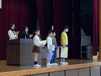 終業式の後には、2学期に様々な分野で活躍した児童生徒の表彰が行われ、全校児童生徒から温かな拍手が送られました。