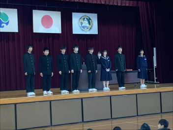 9年生の代表生徒からは、英語スピーチへの挑戦や、「庄内未来研究所」の所長としての活動を振り返りがありました。未来を見据え、自分たちの手で学校や地域を良くしていこうとする力強さを感じることができました。