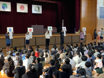 今回の終業式は、1年生から9年生までが体育館に一堂に会して行われました。ここ最近は熱中症、感染症対策等のため、リモートでの開催が続いていました。全校児童生徒が集まることで、学年を越えてお互いの顔を見ながら式を行える喜びを、改めて実感する時間となりました。