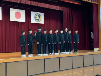 8年生の生徒代表は、最高学年への進級を控えた8年生らしく、「受験に向けて意識を高めること」「部活動に全力で取り組むこと」を目標に掲げました。文武両道を目指す力強い言葉に、全校児童生徒も刺激を受けた様子でした。