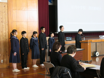 本日の説明会には、庄内小学校と村櫛小学校の児童が参加しました 。この会のねらいは、中学校での学習や生活についてあらかじめ知ることで、新しい環境への不安を和らげ、中学生としての自覚をもってもらうことにあります 。