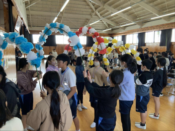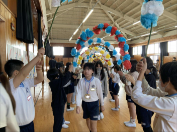 本校は施設一体型の小中一貫校です。卒業しても学び舎が変わるわけではないので、一般的な「送る会」という形はとりませんが、小学校リーダーとして活躍してくれた6年生に感謝を伝えたいという5年生の熱い思いから、この会が実現しました。