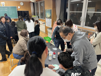 今回の企画運営を中心となって進めてくださったのは、学校応援組織の「TEAM“笑”」の皆さまです 。夜分にもかかわらず、保護者ボランティアと教職員、総勢40名ほどが集まり、和やかな雰囲気の中で作業が進められました。
