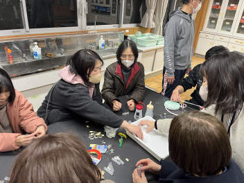 •  3月5日(木)の夜 、本校の理科室にて、卒業式で卒業生が胸に飾る「ガーベラのコサージュづくり」を行いました 。