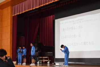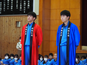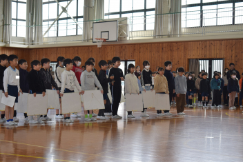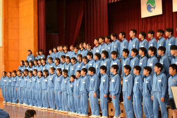 本校は施設一体型の小中一貫校として、小学校課程を修了する6年生と、中学校課程を修了し義務教育を終える9年生、それぞれの節目を大切にお祝いしています。