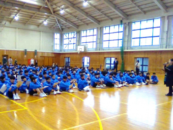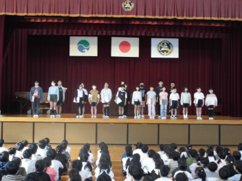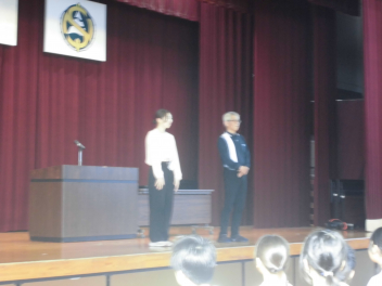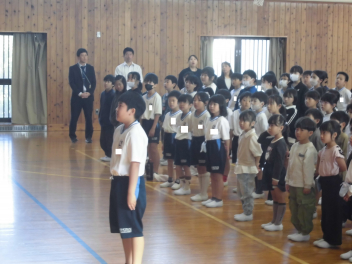 朝会の最後には、本校に新しく来られた2名の先生の紹介が行われました。新しい先生方の挨拶に、子供たちからは温かな拍手が送られ、会場は和やかな雰囲気に包まれました。